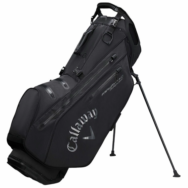 | Callaway Fairway 14 Hyper Dry Golf Stand Bag Feature Loaded With Waterproof Protection A premium stand bag from Callaway Golf, the Fairway 14 Hyper Dry Stand Bag is designed to fill all requirements the carry bag player needs with premium performance and waterproof protection. Featuring a 14 way graphite friendly divider system with 14 individual full length dividers, the Fairway 14 Hyper Dry Stand bag offers exceptional club organisation while the super soft mesh hip pad provides comfort and ventilation during movement. The bag features 9 pockets which include and range of water resistant valuables pocket, insulated cooler pocket, full length pockets & more. An extremely well designed premium bag with non-slip foot pads, Traction base system and X-Act double comfort tech strap. The Callaway Fairway 14 Hyper Dry Stand Bag is a stylish and functional stand bag with luxury organised design. |