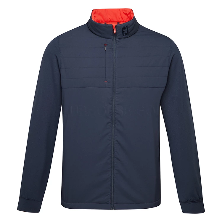 | FootJoy FJ Hybrid Golf Wind Jacket Thermal Insulation With Padded Quilted Design The FootJoy FJ Hybrid Wind Jacket is the perfect garment for those cold windy days on the course with 100% windproof protection and added thermal insulating design. Made from 100% polyester, the FJ Hybrid Wind Jacket is the ideal garment for cold, windy days when extra warmth is needed. It can also be worn in light rain showers and offers light shower proof protection along with the highly insulating design that retains body heat. The woven panel overlay helps trap body heat to retain your core temperature even on the coldest of days. The FJ Hybrid Wind Jacket has a quilted design with zip contrast detail and the FJ brand logo on the left collar for added style. With 2 side pockets and full zip design, this thermal wind garment offers exceptional performance with a premium look. |