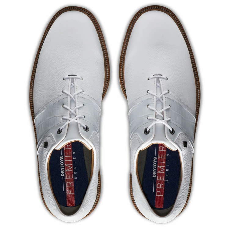 | FootJoy Premiere Series Packard 53908 Golf Shoes Exquisite Craftsmanship With Premium Style Introducing FootJoy Premiere Series Golf Shoes, inspired by then but supercharged for now. The Premiere Series begins a new chapter for FJ. A modern reimagining of their rich footwear history, supercharged with technology and innovation, developed with the worldÂ’s best players. It sets a new standard in golf footwear with exquisite craftsmanship and premium hand-selected materials form an irresistible silhouette with uncompromising playing comfort. The Packard style is powered by revolutionary VersaTrax+ technology with Pulsar low profile cleats, delivering unparalleled traction and stability in every playing condition and on every playing surface. With a Dual Durometer TPU, this outsole is super durable and provides traction for all types of surfaces. For under foot comfort, Ortholite EcoPlush FitBed provides the perfect balanced of stability along with enhanced cushioning for exceptional under-foot comfort. Constructed with a premium upper, they feature Pittard’s leather along with an ultra-soft sheep skin leather liner for enhanced feel and durability. The Premier Series also boasts waterproof protection and comes with a 1 year waterproof warranty. Designed for the modern player, inspired by classic heritage, FootJoy Premier Series shoes offer complete performance and style. |