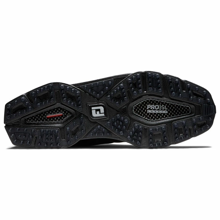 | FootJoy Pro SL Carbon 53080 Golf Shoes Tour Level Spec With Carbon Fibre Platform The brand new FootJoy Pro SL Carbon is the ultimate players spikeless shoe that combines a soft and comfortable waterproof upper with a midsole/outsole unit that also features Carbon Fibre for tour level stability. This all comes courtesy of a proprietary polymer outsole material called Fine-Tuned Foam (FTF), which is 10% lighter than conventional EVA foams and provides enhanced cushioning and shock absorption for added comfort. Comprised of three layers of different densities fused together, FTF is the key material to ensure that Pro SL delivers comfort and stability. The top layer that cradles the foot is a softer durometer to provide all day comfort, while the lower portion is firmer to deliver perimeter stability around the foot for maximum support throughout the swing. Couple that with an Integrated Carbon Fibre Platform and the result is comfort with advanced stability and energy return. A new Infinity Outsole with over 100 individual rubber lugs provide complete traction and ground connectivity and the 3D molded foam collar features Ortholite impressions Fit-Bed for ground breaking comfort. The upper is made of ‘ChromoSkin’ leather by Pittards of England; a unique full grain leather which is supple, lightweight, thin yet durable and completely waterproof. For the ultimate in tour level performance, support and stability, choose Pro SL Carbon and wear the shoe of the games best players. |