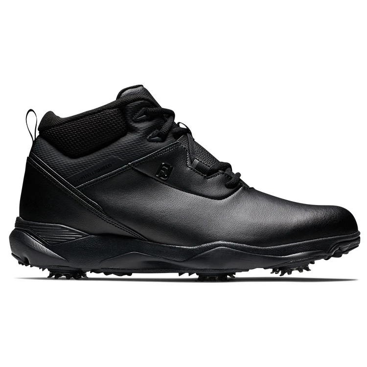 | FootJoy Stormwalker Winter 56729 Golf Boots Maximum Protection During Winter Months The new FootJoy Winter Golf Boots offers golfers ultimate footwear performance during the winter months with added warmth, stability and maximum waterproof protection. This Winter Golf Boot represent great all round performance for the winter season with a 100% waterproof guarantee. Designed to withstand the toughest winter conditions that the elements can throw at a golfer on the golf course, this high-quality boot has been specifically designed for the committed golfer. Featuring a soft, full grain leather with thermal linings for a comfortable, dry in-shoe environment. With a moulded high density EVA FitBed that offers comfort and control, and a lightweight, responsive cushioned midsole with Dura-Max rubber outsole, the Winter Boot is engineered to make every day playable with extreme protection against the harshest conditions. A premium shoe with a full rounded toe character with a full fit across the forefoot and instep with a slightly narrow heel and, added toe spring for an athletic profile. Treated and processed to ensure waterproof properties are engaged at the molecular level and an additional membrane is integrated to bolster waterproof protection. |
