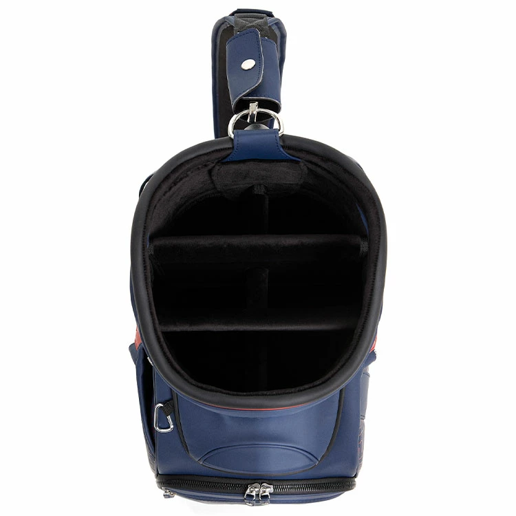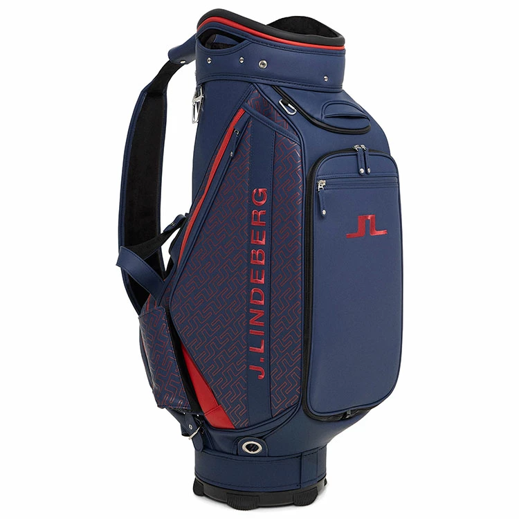 | J.Lindeberg ST Golf Tour Staff Bag Superior Craftmanship With Tour Branding Introducing the all new J.Lindeberg ST Tour Staff Bag. Constructed from premium materials and in collaboration with the premium brand Vessel, this stylish tour bag features embroidered J.Lindeberg branding. With an oversized construction and a 10″ 6-way steel ring top, this bag is made from durable synthetic leather and polyester. Complete with 8 pockets including a velour lined valuables pocket, 2 water bottle pockets, 2 magnetic pockets and a detachable belly panel. Superior craftmanship, iconic branding and functional performance makes this a premium bag for any golfer. |