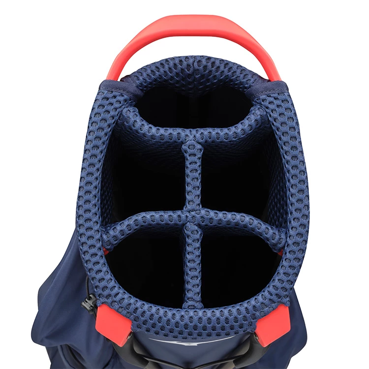 | Mizuno K1-LO Golf Stand Bag Ultralight Construction For Carrying Comfort The Mizuno K1-LO is an ultra-lightweight stand bag that puts the joy back into carrying. Mizuno have removed every gram of weight without dropping its most important features. Pack only what you need and take the weight off. Featuring an ergonomically designed 5 way top cuff with balance handle for easy lifting. There is storage with 5 pockets including in a full length apparel pocket, ball pocket, fleece lined valuables pocket, and accessory pocket. With carbon fibre legs and lighter weight fabric the K1-LO Stand Bag weighs in at just 1.2KG which is lighter than most of its competitors for the size of the bag. |