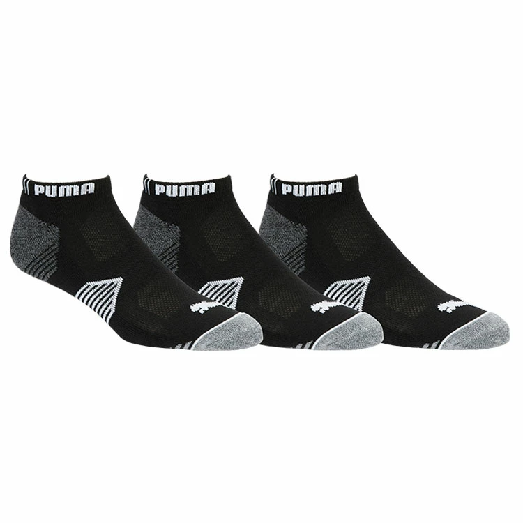 | Puma Essential Low Cut Golf Socks (3 Pack) Plush Cushioning With CoolMax Technology Look no further than the Puma Essential 1/4 Cut socks, featuring Cool Max technology, Lycra, and maximum cushioning. You’ll never need another sock to wear to the course. – 3 Pack Socks |