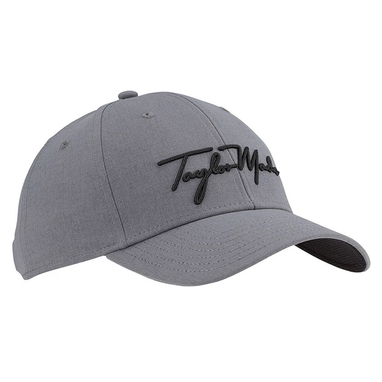 | TaylorMade Script Seeker Golf Cap Lifestyle Script Design With Adjustable Back The TaylorMade Script Seeker Cap is made from 100% polyester fabric. It has a moisture wicking sweatband, dark under bill for reduced glare and an adjustable back for a comfortable fit. – Relaxed construction with adjustable back. – Performance moisture wicking fabric with UV protection. – Liftstyle Script TaylorMade branding. – Dark under bill to reduce glare. – Moisture wicking sweatband. – 100% polyester. |