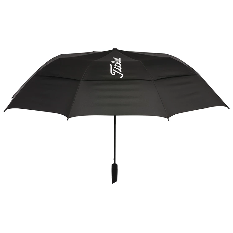 | Titleist Players Folding Golf Umbrella Lightweight Design With Smaller Canopy With an innovative folding design, the Titleist Players Umbrella offers great performance in all weather conditions. Ideal for storing in your golf bag pockets, the folding design is telescopic and opens with a double canopy design that features the anti-inversion system to prevent the umbrella from blowing inside-out. – UV protection – Use of highly durable materials – Telescopic shaft for compact folding – Double canopy anti-inversion system – Ergonomic handle design – Trademark Titleist branding – Super lightweight design – 58 inch canopy |
