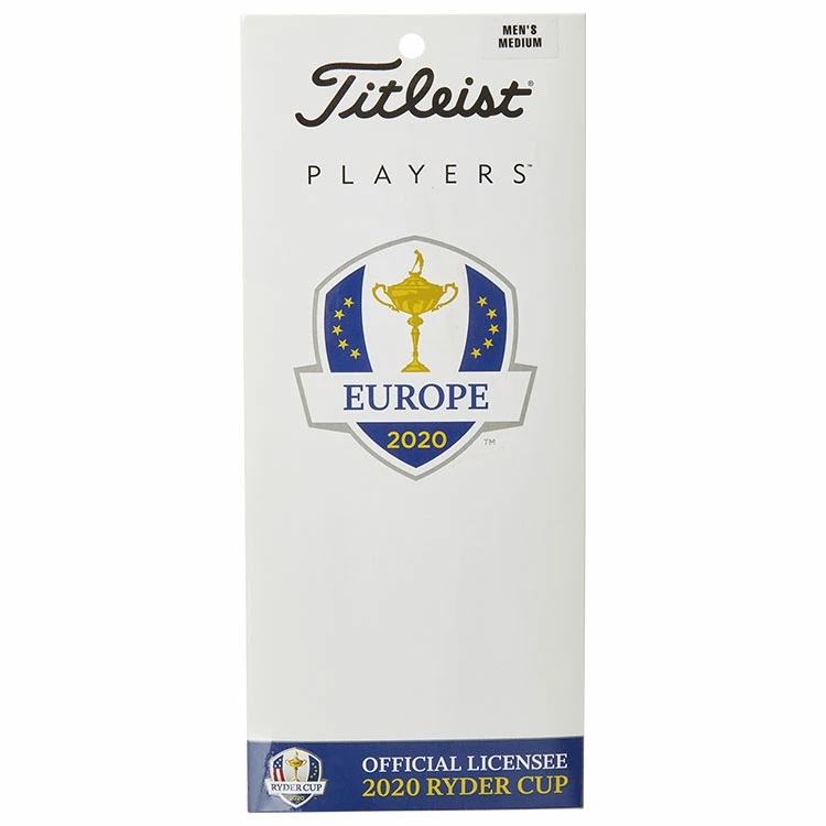 | Titleist Players Ryder Cup Team Europe Golf Glove Leading Tour Choice With Ryder Cup Design The choice of leading tour professionals around the globe, the Titleist Players Glove is the highest quality premium leather glove. A tour performance glove for the serious golfer, the Players features the finest quality cabretta leather with the thinnest and most consistent fit every time. – Tanned Ethiopian Cabretta leather offers superior water and perspiration resistance – Maintains grip, comfort and performance in all types of weather conditions – Offers consistent fit and feel – Delivers exceptional breathability – Outstanding club feel due to premium selected, soft, thin skins – Precisely placed seams do not interfere with grip – Patented satin reinforcement at cuff and thumb improves tear strength – Velcro closure with Ryder Cup Inspired “Titleist 1” logo |