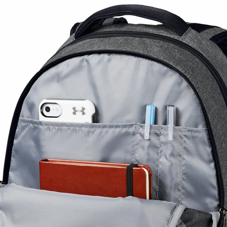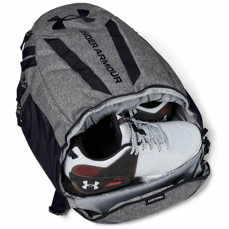 | Under Armour Hustle 5.0 Golf Backpack More Functional With Extra Storage Pockets The Under Armour Hustle 5.0 Backpack bag is comfortable, super durable, and has enough space to carry all of your golf stuff. With padded shoulder straps, tough materials and pockets on pockets, this ticks off everything you need from a backpack. – UA Storm technology delivers an element-battling design |